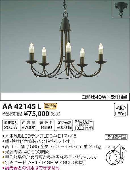 商品カテゴリ一覧 > コイズミ照明 > 照明器具 > シャンデリア > AA42145L コイズミ シャンデリア LED(電球色)