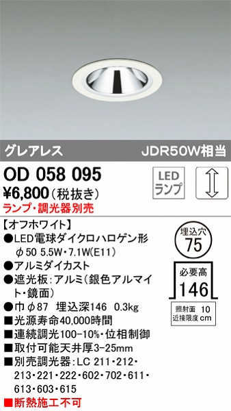 商品カテゴリ一覧 > オーデリック > 照明器具 > ダウンライト > OD058095 オーデリック ダウンライト 白熱灯