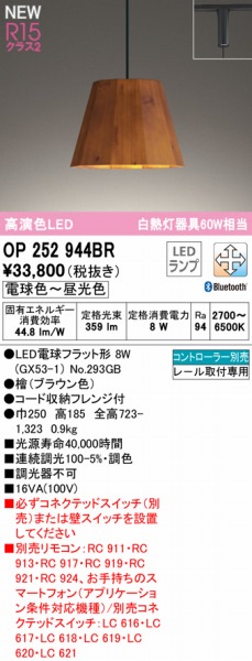 OP252944BR オーデリック レール用ペンダントライト ブラウン LED 調色 調光 Bluetooth