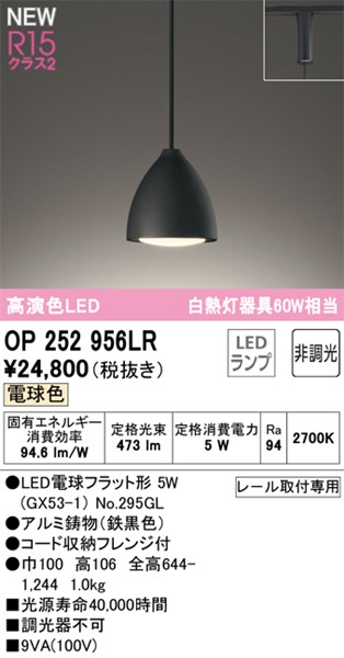 OP252956LR オーデリック レール用ペンダントライト 鉄黒色 LED(電球色)