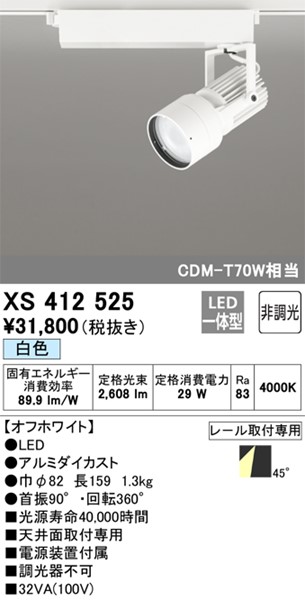 | メーカー / 型番 | オーデリック XS412525 レール用スポットライト |