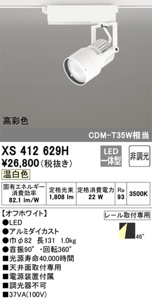 XS412629H オーデリック レール用スポットライト ホワイト 高彩色LED(温白色) 拡散 (XS412121H 代替品)