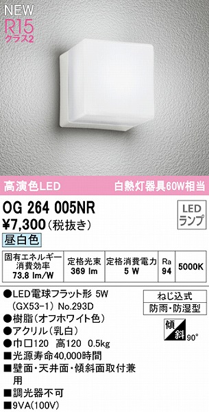 | メーカー / 型番 | オーデリック OG264005NR 浴室灯・屋外用ブラケットライト |