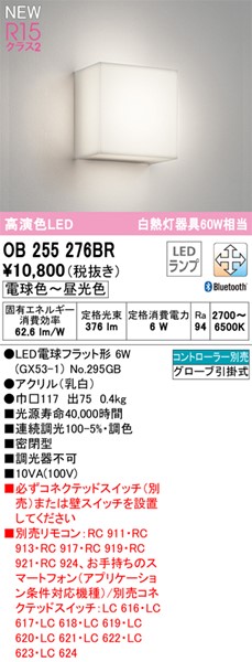 OB255276BR オーデリック ブラケットライト LED 調色 調光 Bluetooth