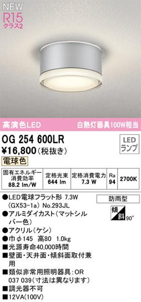 | 商品仕様 | カラー区分: シルバー ランプ色: LED(電球色) ランプ・W数: NO293JL(LDF7L-H-GX53/90/R90)×1 取付方法: 取付・電気工事が必要です。 主な仕様: 防雨型 白熱灯器具100W相当 20230630 |