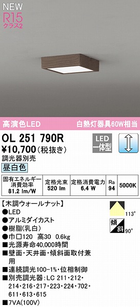 | 商品仕様 | カラー/サイズ区分: ウォールナット □120 ランプ色: LED 昼白色 調光 ランプ・W数: LED内蔵 取付方法: 取付・電気工事が必要です。 主な仕様: ※壁面・天井面・傾斜面取付兼用 20210915 |