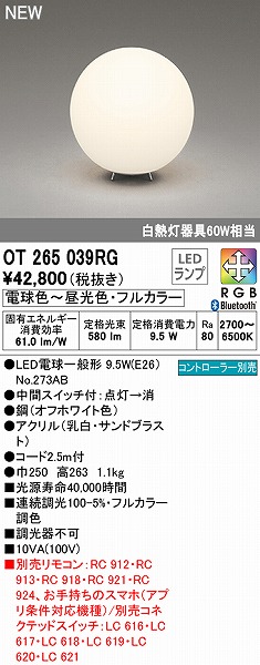| メーカー / 型番 | オーデリック OT265039RG スタンドライト |