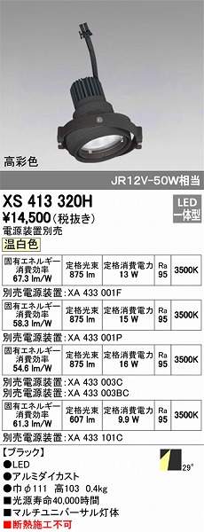 | メーカー / 型番 | オーデリック XS413320H マルチユニバーサル灯体 |
