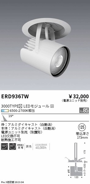 メーカー / 型番 遠藤照明 ERD9367W スポットライト