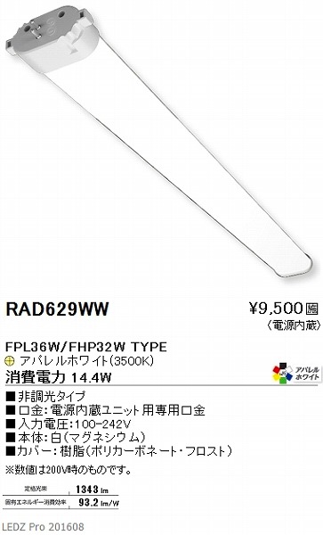 | メーカー / 型番 | 遠藤照明 RAD629WW ツインチューブユニット |