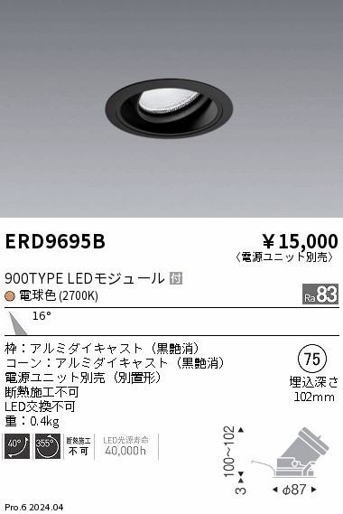 | メーカー / 型番 | 遠藤照明 ERD9695B ユニバーサルダウンライト |