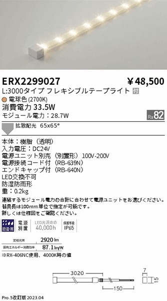 ERX2299027 遠藤照明 屋外用テープライト L3000タイプ LED(電球色) 拡散