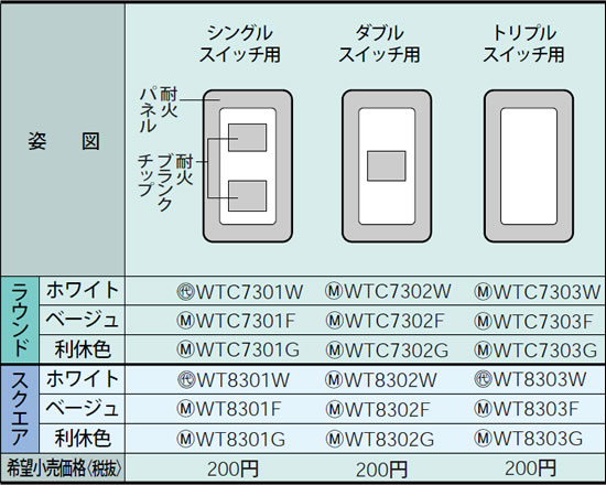 | メーカー / 型番 | パナソニック WTC7302F 簡易耐火用スイッチプレート(ラウンド) |