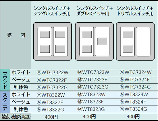 | メーカー / 型番 | パナソニック WTC7324W 簡易耐火用スイッチプレート(ラウンド) |