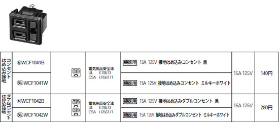 メーカー / 型番 パナソニック WCF1042B 機器用15A125V接地はめ込みダブルコンセント