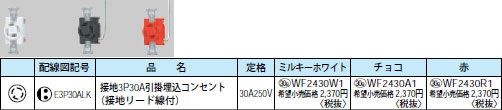 | メーカー / 型番 | パナソニック WF2430R1 接地3P30A引掛埋込コンセント |