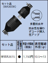 | メーカー / 型番 | パナソニック WA3615 接地15A防水ゴムコードコネクタ |