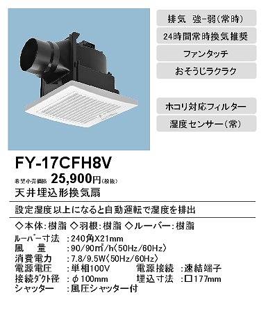 | メーカー / 型番 | パナソニック FY-17CFH8V 天井埋込形換気扇 |