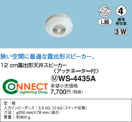 | メーカー / 型番 | パナソニック WS-4435A 12 cm露出形天井スピーカー (アッテネーター付) 3W |