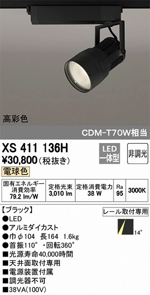 | メーカー / 型番 | オーデリック XS411136H レール用スポットライト |