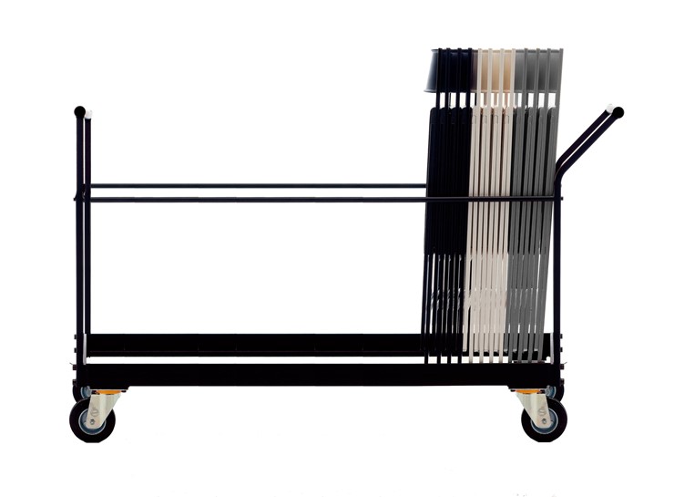 | 商品について | ■材質: スチール、ブラック粉体塗装 ■仕様: 45脚まで積載可能 キャスター、ストッパー付き ※この商品は組み立て式です。 ポケットシリーズ専用の大型トローリーです。 ストッパーが付いており、止まっている時には動かないようにしてお使いいただけます。 |