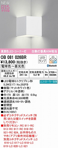 | メーカー / 型番 | オーデリック OB081026BR ブラケットライト |