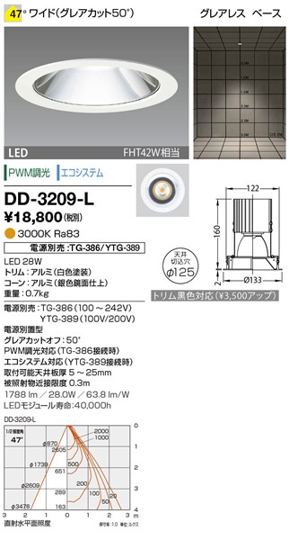 | メーカー / 型番 | 山田照明 DD-3209-L グレアレスダウンライト |