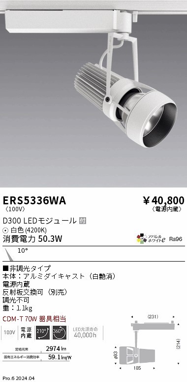 | メーカー / 型番 | 遠藤照明 ERS5336WA レール用スポットライト |