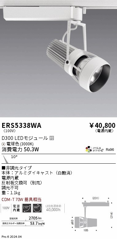 | メーカー / 型番 | 遠藤照明 ERS5338WA レール用スポットライト |