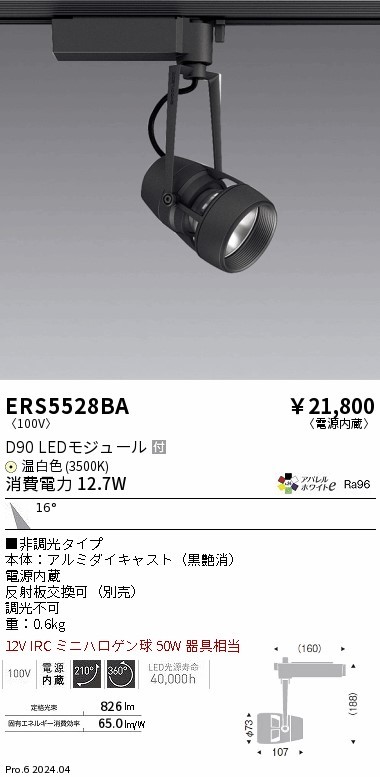 | メーカー / 型番 | 遠藤照明 ERS5528BA レール用スポットライト |