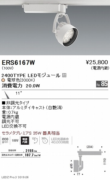 | メーカー / 型番 | 遠藤照明 ERS6167W レール用スポットライト |