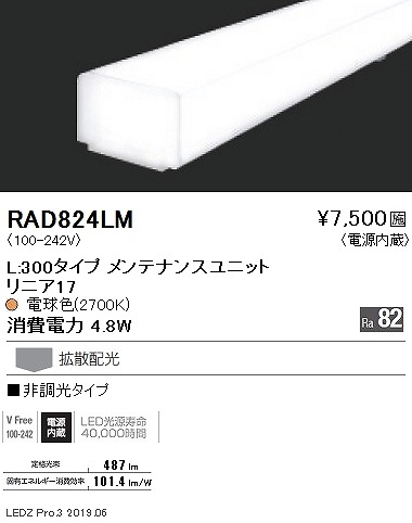 商品カテゴリ一覧 > 施設用照明器具 > 演出用照明器具 > 間接照明 > RAD824LM 遠藤照明 間接照明 リニア17 LEDユニット L300タイプ 電球色 拡散