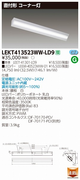 | メーカー / 型番 | 東芝ライテック LEKT413523WW-LD9 コーナーベースライト |