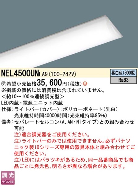 | メーカー / 型番 | パナソニック NEL4500UNLA9 ライトバー 40形 |