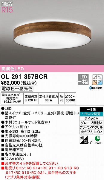 | メーカー / 型番 | オーデリック OL291357BCR シーリングライト |