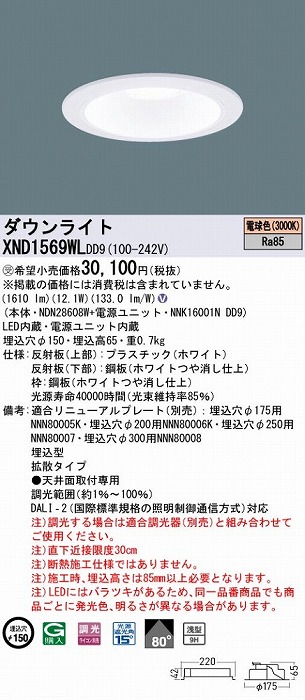 | メーカー / 型番 | パナソニック XND1569WLDD9 ダウンライト |