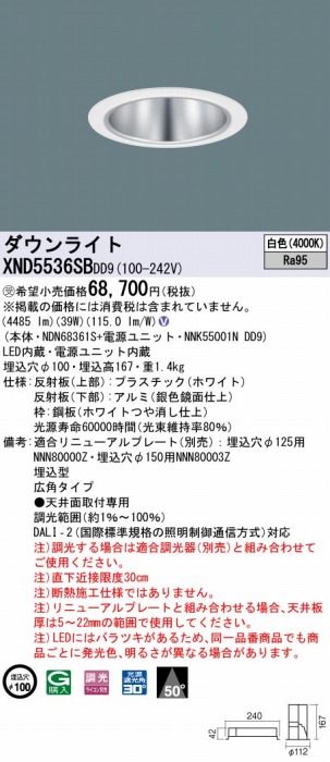 | メーカー / 型番 | パナソニック XND5536SBDD9 ダウンライト |