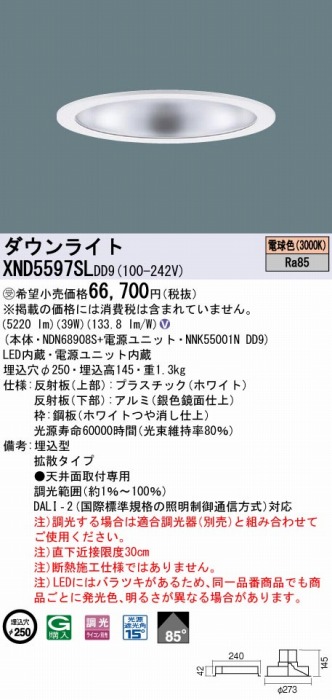 | メーカー / 型番 | パナソニック XND5597SLDD9 ダウンライト |