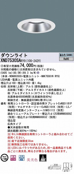 | メーカー / 型番 | パナソニック XND7530SARY9 ダウンライト |