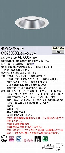 | メーカー / 型番 | パナソニック XND7530SCRY9 ダウンライト |