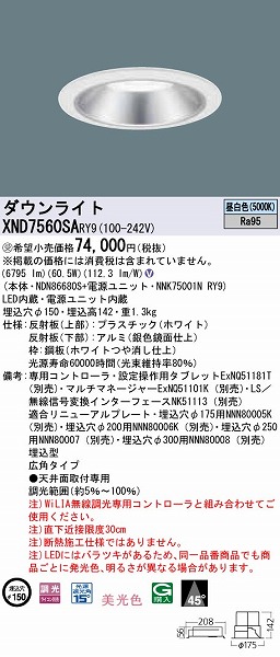 | メーカー / 型番 | パナソニック XND7560SARY9 ダウンライト |