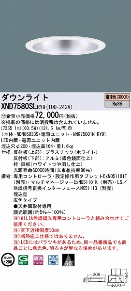| メーカー / 型番 | パナソニック XND7580SLRY9 ダウンライト |