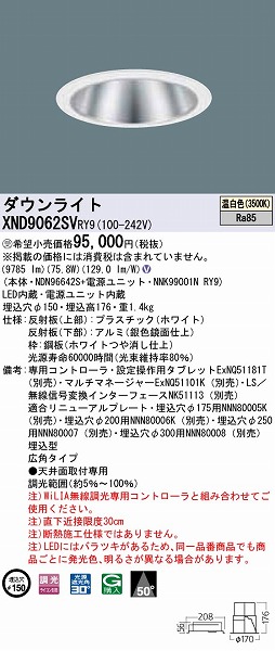 | メーカー / 型番 | パナソニック XND9062SVRY9 ダウンライト |