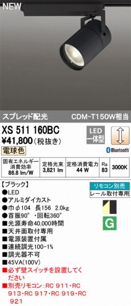| メーカー / 型番 | オーデリック XS511160BC レール用スポットライト |