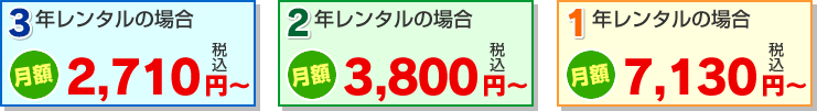 | No. | 内容 | 3年レンタル月額 | 2年レンタル月額 | 1年レンタル月額 |